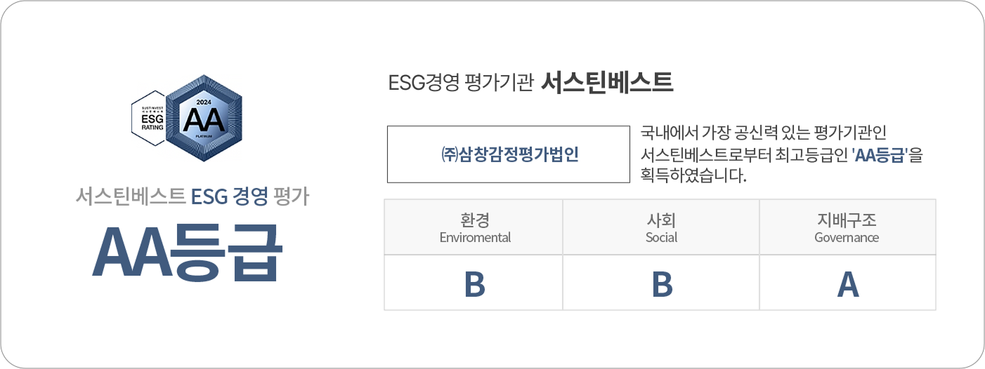 객관적인 외부 평가를 통해 지속 가능한 경영을 실천하며 환경과 사회 발전에 기여하는 것에 최선을 다할 것입니다.
